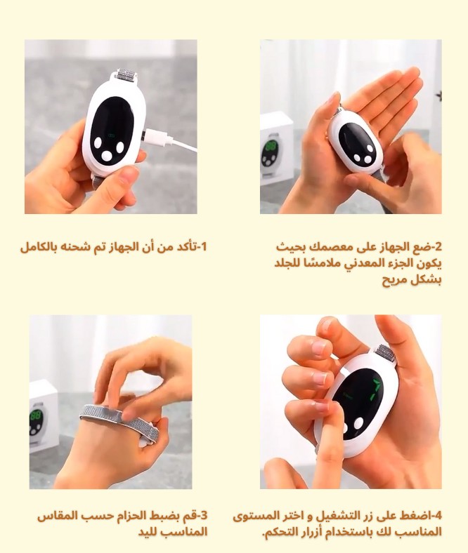 - الكهربائية يتم ارتداؤه حول المعصم ويهدف إلى تحسين
